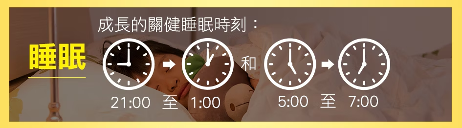 生長激素大約在晚上十點到半夜兩點是分泌高峰,尤其是熟睡時才會大量分泌。